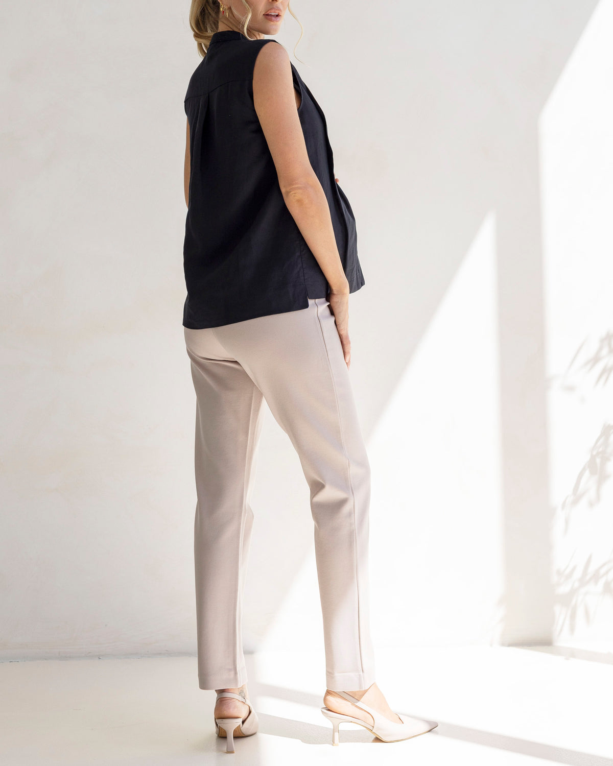 All day comfort plus timeless style. Our 'Zoe' Maternity Work Pants feature a high waist band and super flattering leg shape will be ideal during your whole pregnancy and perfect after the birth.