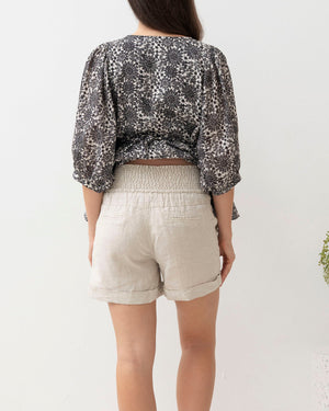 These maternity shorts are made from a lightweight natural linen fabric, as well as a thick stretchy smocked waistband that will sit comfortably over your growing belly and throughout your pregnancy.